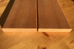 Neben der cm-Ware (Seitenware) werden auch prismierte Bretter (Stärke nur 24 mm), 4m Länge angeboten.